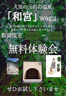 家庭でお気軽に楽しめる岩盤足浴「和宮」玉川温泉湯の花セラミックボールを配置することで、足裏の刺激を高め足元をじんわりと温めます。132,000円(税込み)期間 : 10月9日(木)〜10月13日(月・祝)時間 : 10時〜18時(最終日は16時まで)場所 : 2階 マルエツ前※催事・取扱商品は、予告なく変更・中止になる場合がございます。※画像はイメージです。